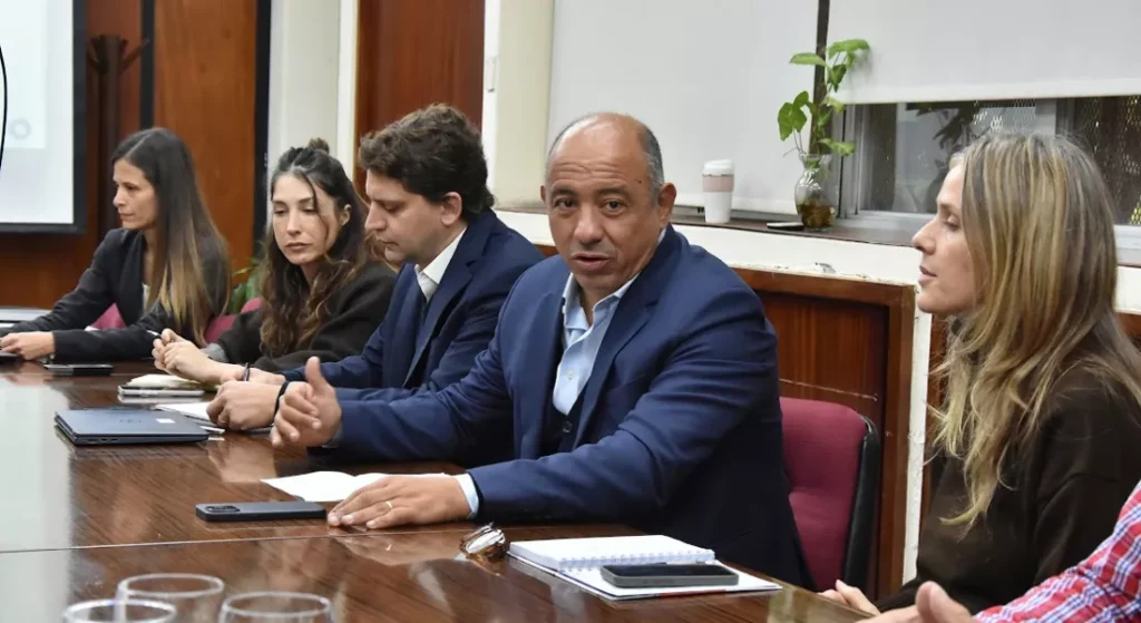 El ministro de Economía y Servicios Públicos, Roberto Dib Ashur, junto a la secretaria de Financiamiento y Planificación Financiera, Liliana Corona, funcionarios de los Ministerios de Infraestructura y Producción, mantuvieron este lunes una reunión con técnicos del Banco Mundial a fin de avanzar en las obras y acciones para la integración regional de la Provincia.