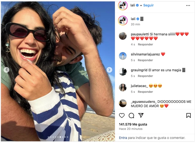 Además, Lali abrió las puertas a la intimidad porque capturó a Rosemblat en situaciones cotidianas como la preparación de una comida o parado bajo el sol a orillas del mar. Sin escribir ni una palabra, más que un emoji de un corazón, Espósito acaba de corroborar que su corazón late fortísimo por esta aventura amorosa.
